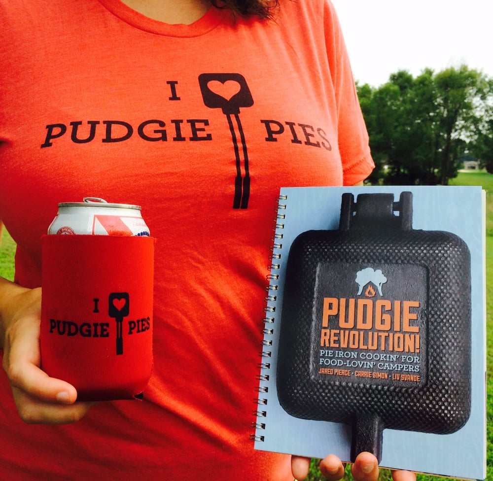 This perfect pudgie pack includes: 1 Pudgie Revolution cookbook, 1 t-shirt, and 1 can coozie. (If you'd like to substitute Pudgie Revolution 2: Pushing Your Pie Iron's Potential, leave us a note at check-out)